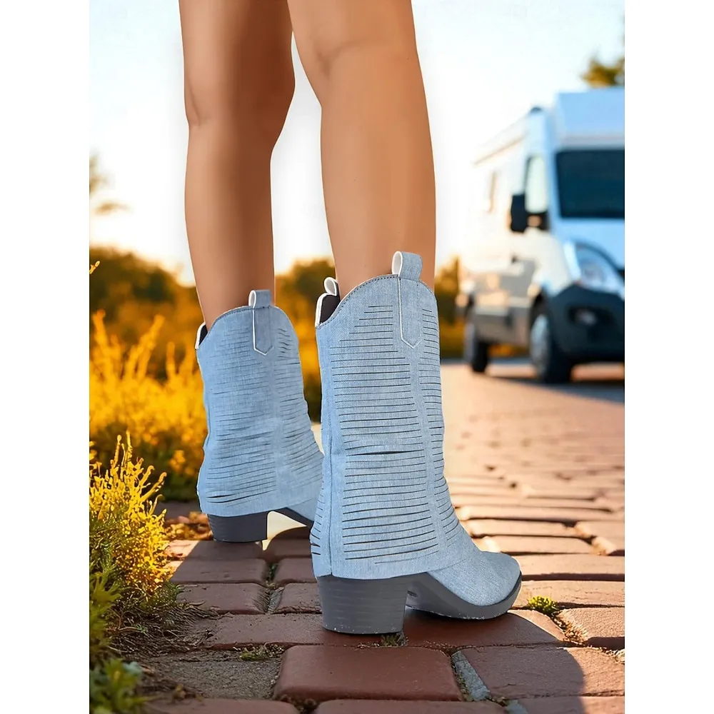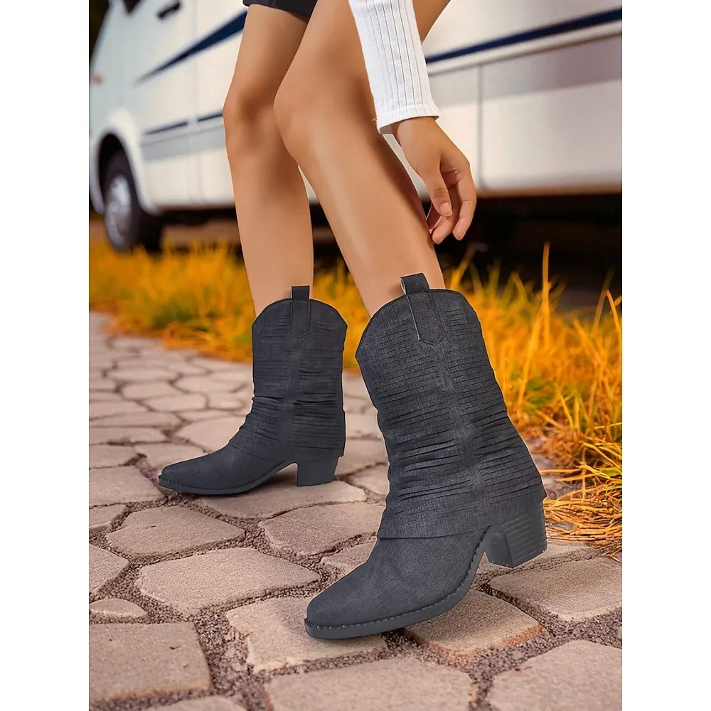 Women’s Denim Western Cowboy Boots – Fashion Mid-Calf Pointed Toe Pull-On Cowgirl Boots for Rodeo, Country Concerts & Outdoor Festivals