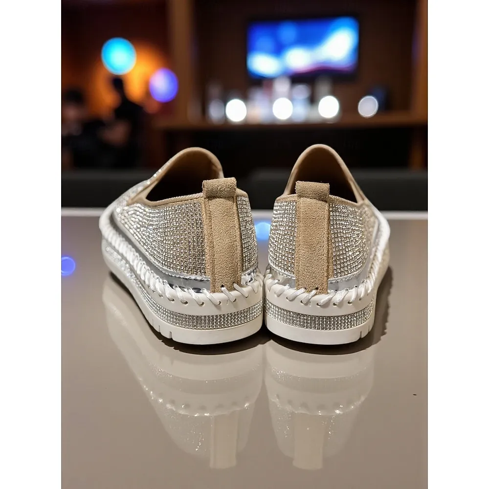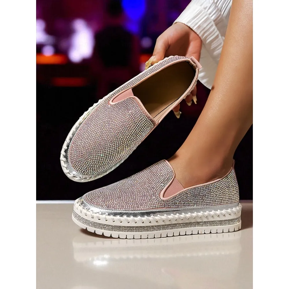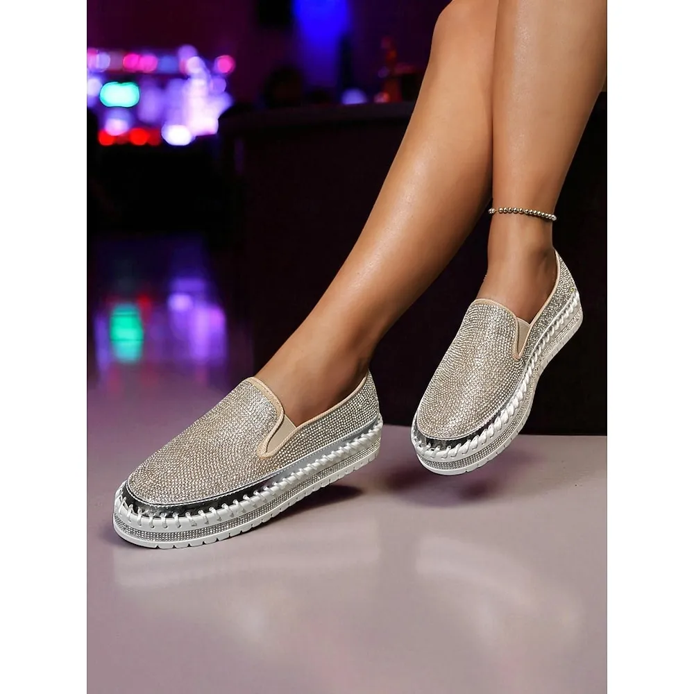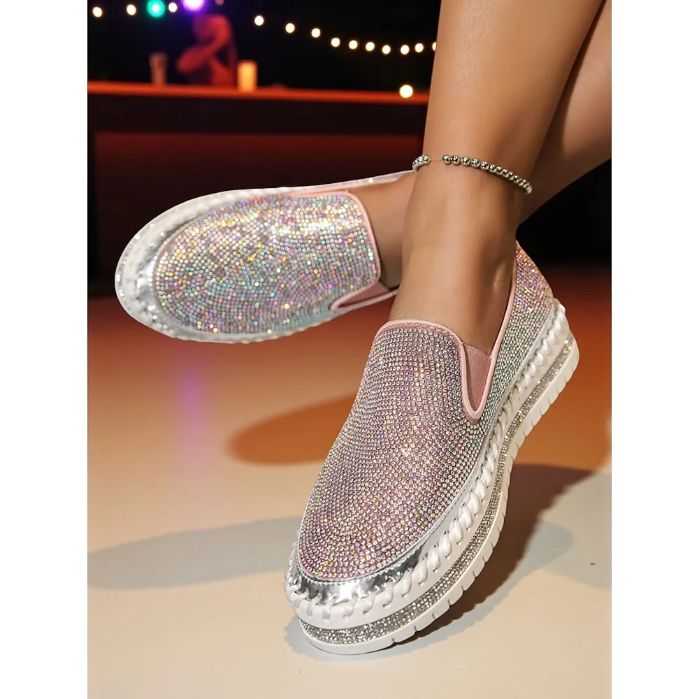 Women’s Rhinestone Slip-On Platform Sneakers Sparkly Casual Party Shoes for Nightlife and Club Outfits