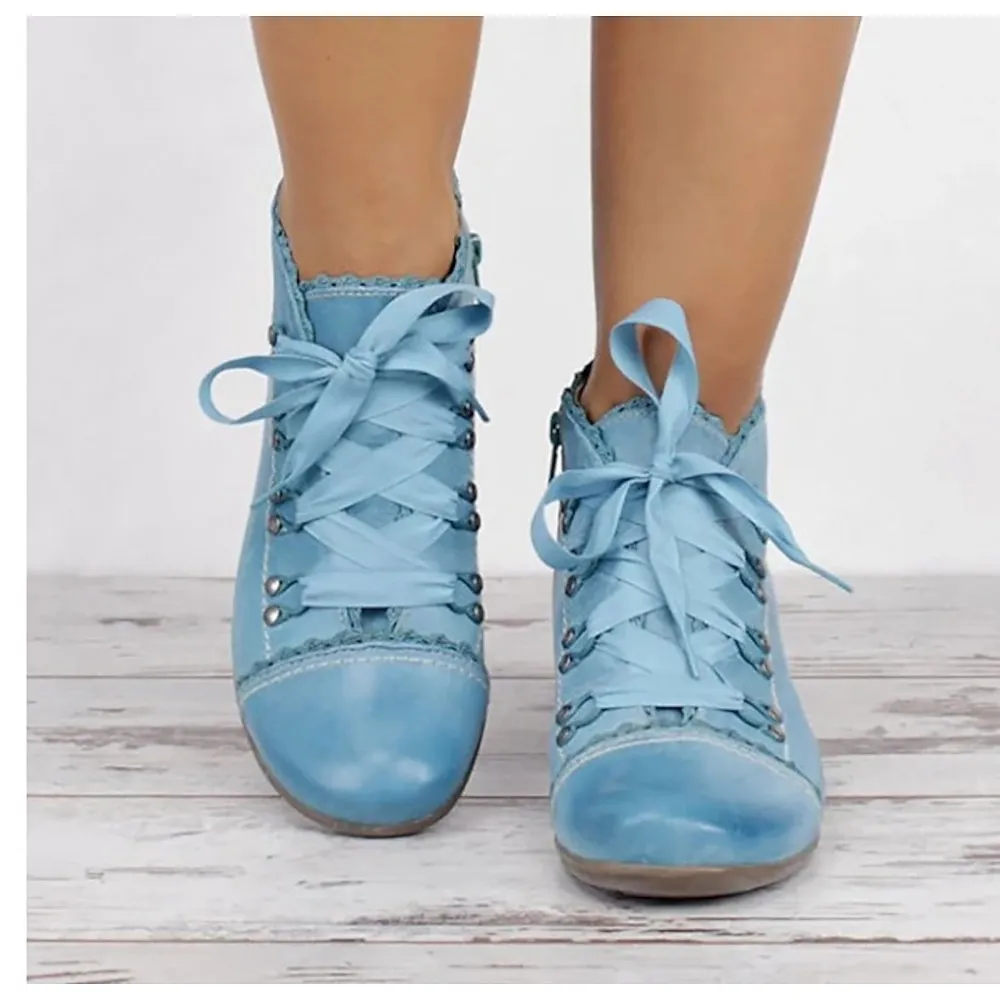 [Material] Crafted with a rich blend of polyester and faux leather, these Victorian-inspired ankle boots boast a vibrant green hue and a smooth, polished finish. The use of high-quality materials ensures durability and comfort, making them an excellent choice for the fall and winter seasons.[Fit] These boots feature a medium kitten heel, offering a comfortable lift that is perfect for both casual outings and semi-formal occasions. The pointed toe design enhances their elegant silhouette, providing a chic and stylish look suitable for various ensembles.[Design Highlights] The lace-up design, adorned with metal eyelets, adds a touch of vintage charm and durability. Decorative stitching at the edges accentuates the boots’ aesthetic, while the wide laces introduce a playful and bold element. The overall design embodies a mix of sexy, vintage, and fashion-forward style, making these boots a standout piece in any wardrobe.[Occasions] Ideal for parties, daily wear, Christmas gatherings, or outdoor events, these boots effortlessly blend sophistication and comfort. Perfect for those aiming to make a bold fashion statement, they are versatile enough for a variety of settings.[Size Notice] Available in a range of sizes from US5.5 to US10.5, these boots offer a standard fit. It is recommended to select your usual size to ensure a perfect fit.OK