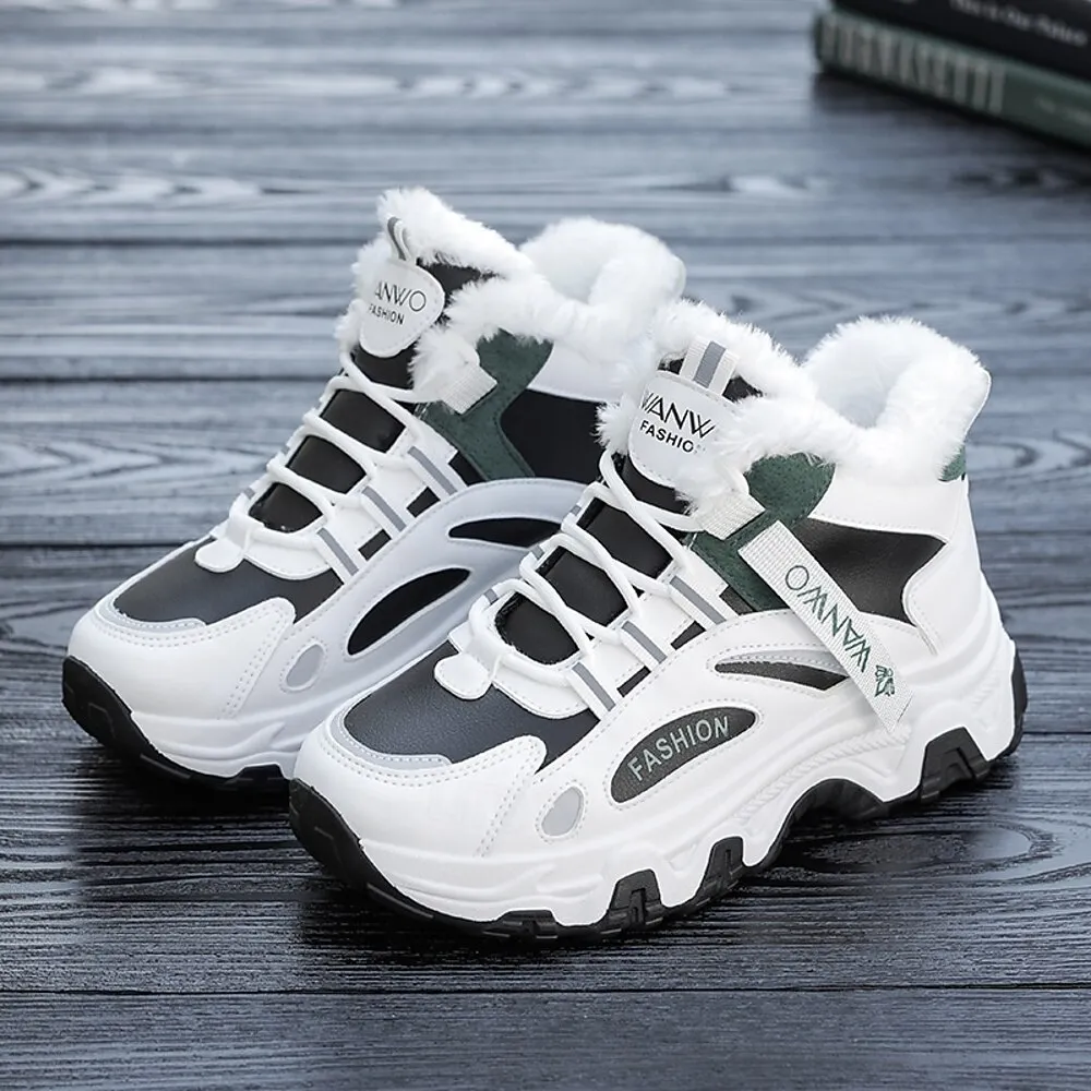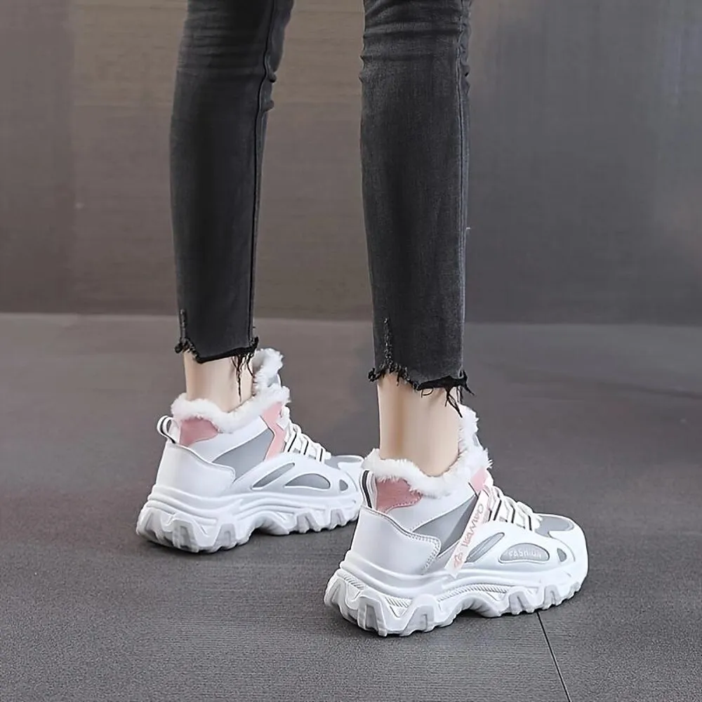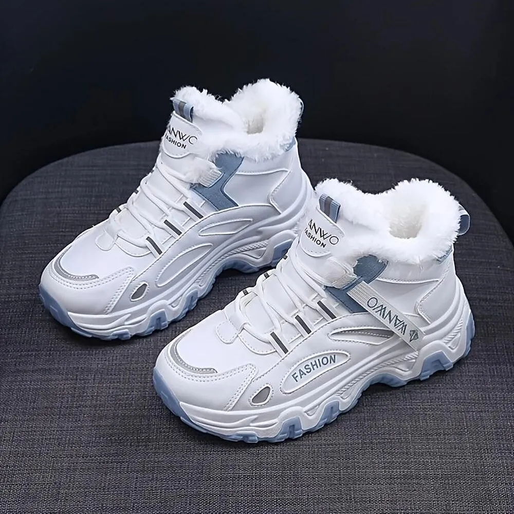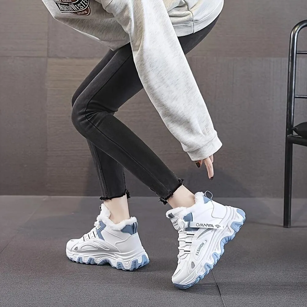 Women’s White Winter Sneakers with Plush Lining and Chunky Sole – Warm High-Top Athletic Shoes for Cold Weather